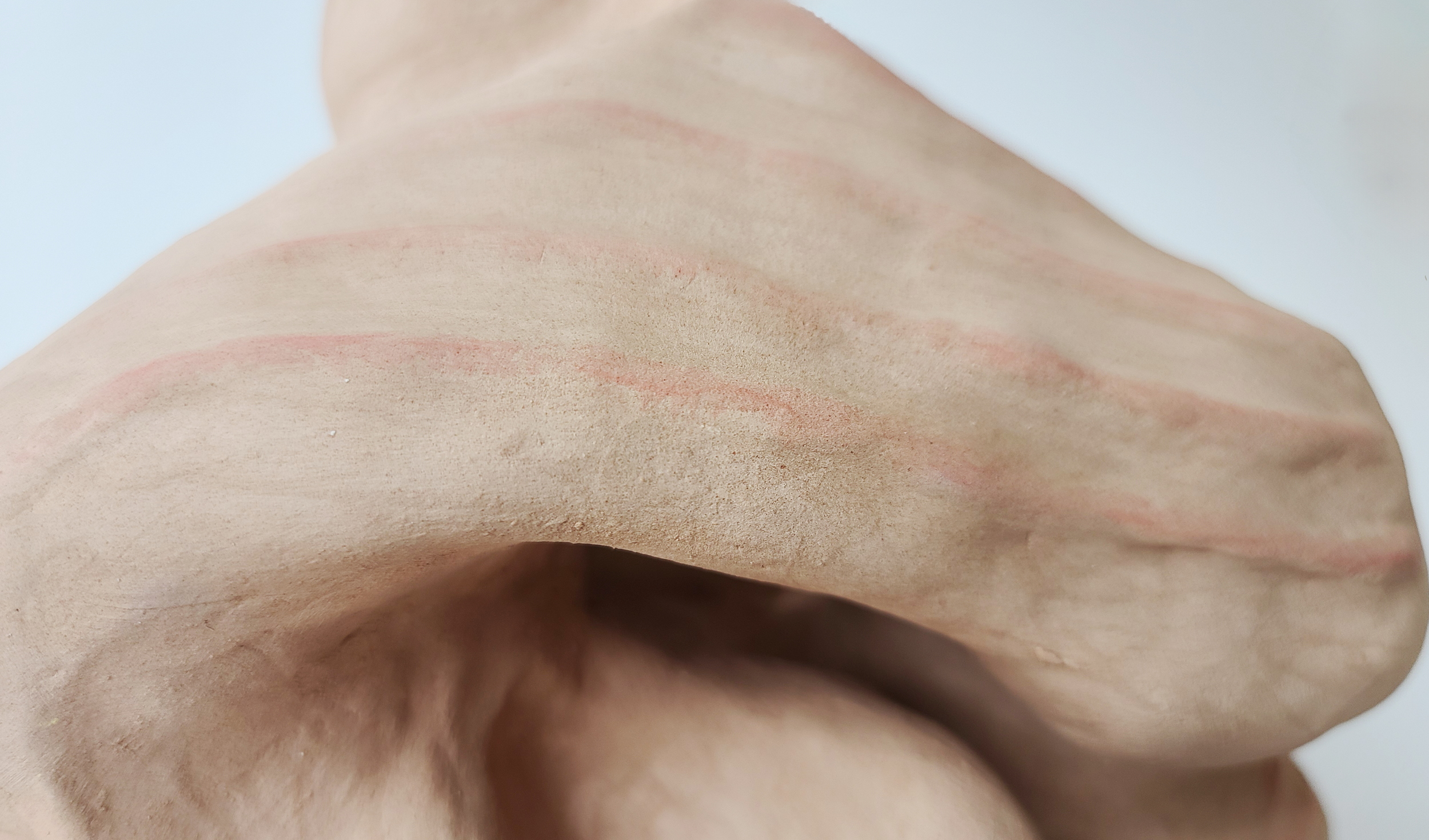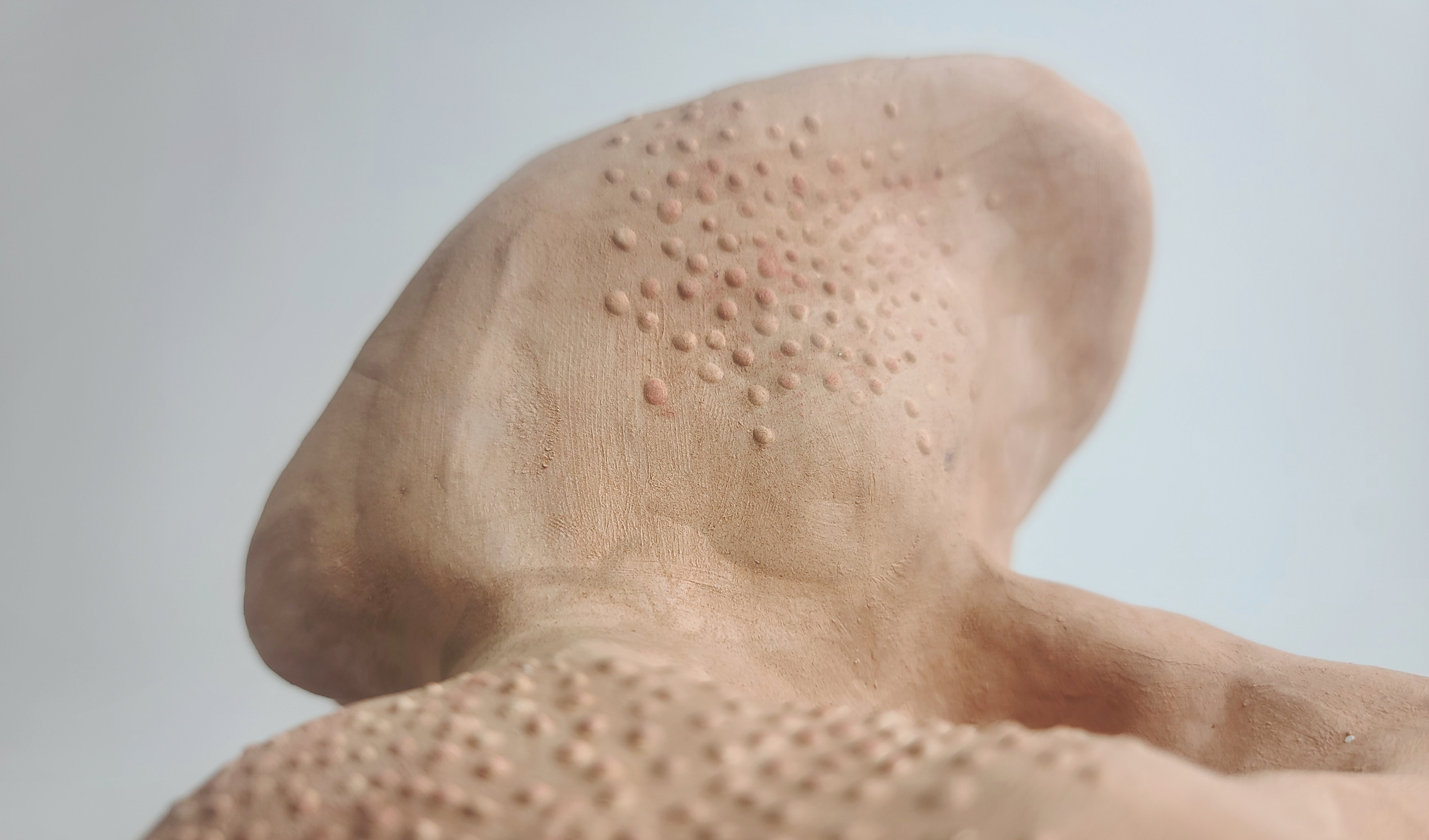 Marked is a ceramic sculpture series that explores the lasting impact of chronic skin conditions and physical discomfort. Each abstract form captures the textures, impressions, and visual memories that pain leaves behind—blisters, indentations, and raised surfaces that feel both bodily and unfamiliar. The series invites viewers to consider how invisible experiences manifest physically, using clay as a medium to give shape to the often overlooked marks pain leaves on our bodies and identities.
